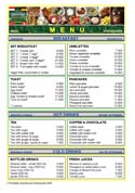 We offer Indonesian food like soups, fried rice, noodles, chicken, curries, peanut sauce, vegetables, tofu and salads. Western food are spaghetti, french fries, roesti and fried potatoes. As desserts we offer fruit salad, fried bananas or pineapple with honey and fried peanuts.